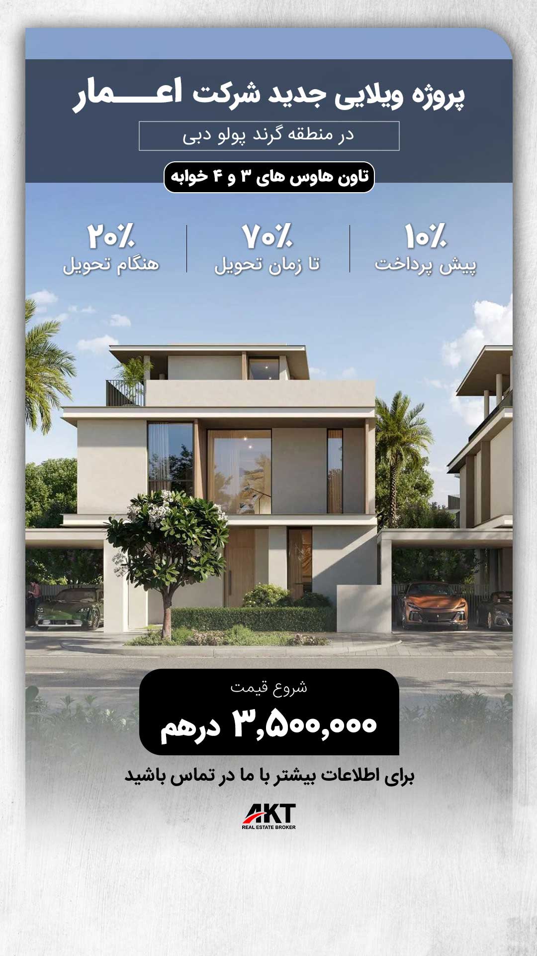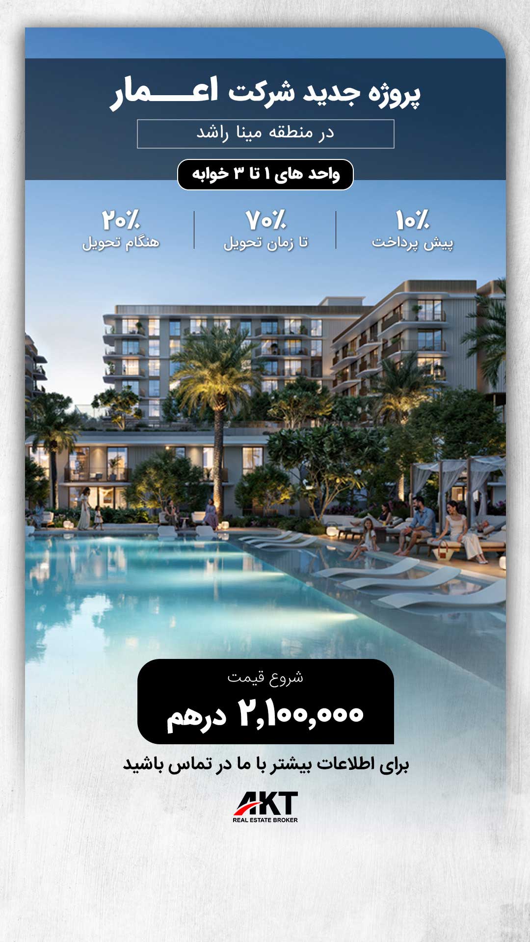 - با ما تماس بگیرید یا پیام بدهید: با مشاوران مجرب ما در املاک امارات از طریق تماس مستقیم یا واتساپ در ارتباط باشید. اطلاعات کامل درباره قیمت، موجودی، شرایط پرداخت و امکانات پروژه را دریافت کنید.